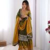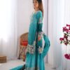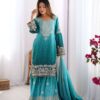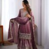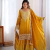 Women’s Chinon Silk Sequence With Rivet Moti Work Straight Kurta With Sharara and Dupatta Set