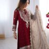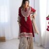 Women’s Faux Georgette Sequins Embroidered Straight Kurta With Sharara Suit and Dupatta Set
