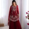 Women’s Faux Georgette Sequins & Thread Work Straight Kurta With Sharara Suit and Dupatta Set
