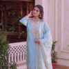 Women’s Silk Heavy Embroidery Sequence Work Top-Bottom Straight Kurti With Pant and Dupatta set