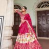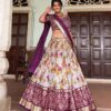 Elegant Tussar Silk Lehenga Set featuring vibrant Patola print with foil work. Includes a stitched lehenga with can-can, unstitched blouse, and printed dupatta. Perfect for festive and wedding occasions.