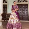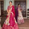 Paired with an unstitched Tussar Silk blouse and a graceful 2.4-meter dupatta featuring matching foil prints, this set is perfect for weddings, festive events, and traditional gatherings. The lightweight micro cotton inner ensures comfort all day long, while the complete package delivers both elegance and ease.